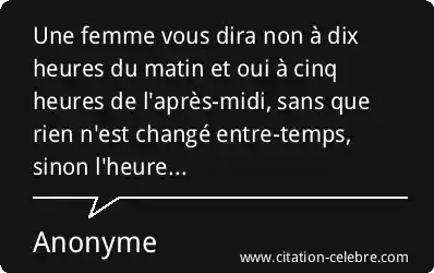 Une femme vous dira non à dix heures du matin et oui à cinq heures de l'après-midi, sans que rien n'est changé entre-temps, sinon l'heure...