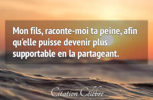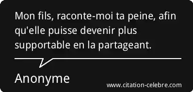 Mon fils, raconte-moi ta peine, afin qu'elle puisse devenir plus supportable en la partageant.