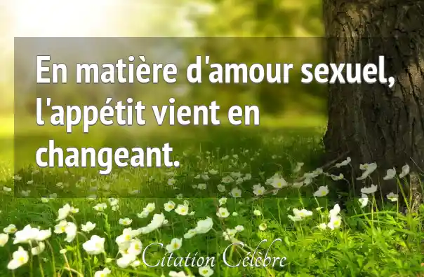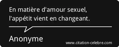 En matière d'amour sexuel, l'appétit vient en changeant.