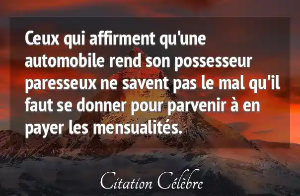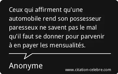 Ceux qui affirment qu'une automobile rend son possesseur paresseux ne savent pas le mal qu'il faut se donner pour parvenir à en payer les mensualités.