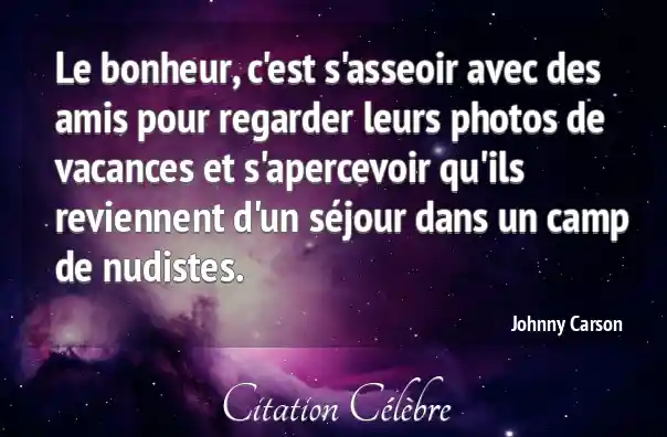 Le bonheur, c'est s'asseoir avec des amis pour regarder leurs photos de vacances et s'apercevoir qu'ils reviennent d'un séjour dans un camp de nudistes.