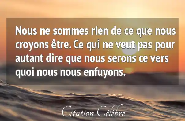 Nous ne sommes rien de ce que nous croyons être. Ce qui ne veut pas pour autant dire que nous serons ce vers quoi nous nous enfuyons.