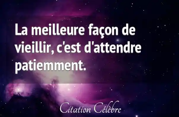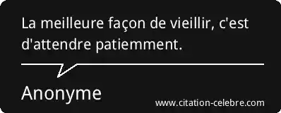 La meilleure façon de vieillir, c'est d'attendre patiemment.