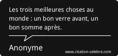 Les trois meilleures choses au monde : un bon verre avant, un bon somme après.