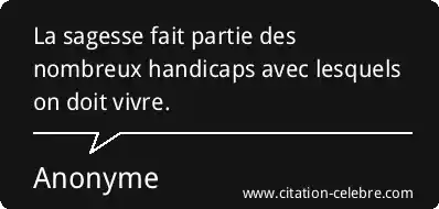 La sagesse fait partie des nombreux handicaps avec lesquels on doit vivre.