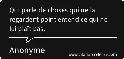 Qui parle de choses qui ne la regardent point entend ce qui ne lui plaît pas.