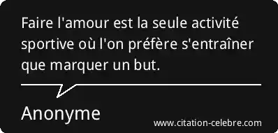 Faire l'amour est la seule activité sportive où l'on préfère s'entraîner que marquer un but.