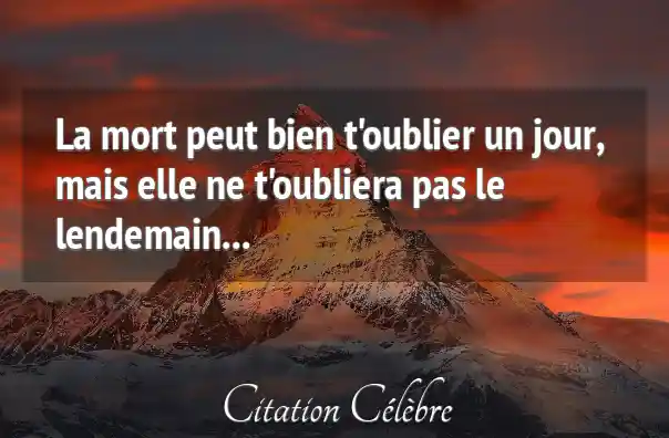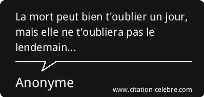 La mort peut bien t'oublier un jour, mais elle ne t'oubliera pas le lendemain...