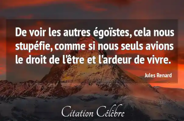 De voir les autres égoïstes, cela nous stupéfie, comme si nous seuls avions le droit de l'être et l'ardeur de vivre.