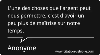 L'une des choses que l'argent peut nous permettre, c'est d'avoir un peu plus de maîtrise sur notre temps.