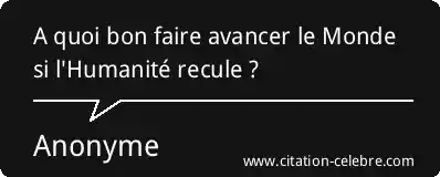 A quoi bon faire avancer le Monde si l'Humanité recule ?