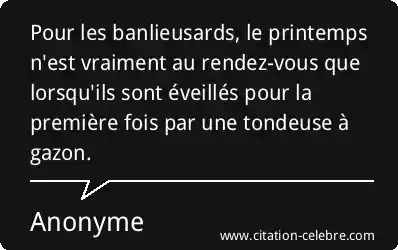Pour les banlieusards, le printemps n'est vraiment au rendez-vous que lorsqu'ils sont éveillés pour la première fois par une tondeuse à gazon.