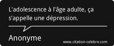 L'adolescence à l'âge adulte, ça s'appelle une dépression.