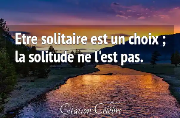 Etre solitaire est un choix ; la solitude ne l'est pas.