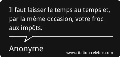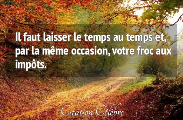 Il faut laisser le temps au temps et, par la même occasion, votre froc aux impôts.