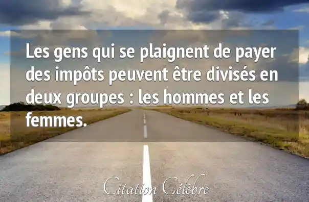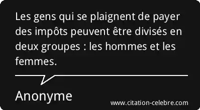Les gens qui se plaignent de payer des impôts peuvent être divisés en deux groupes : les hommes et les femmes.