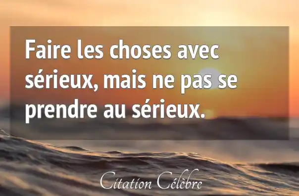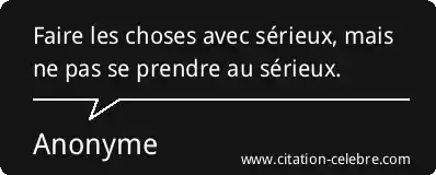 Faire les choses avec sérieux, mais ne pas se prendre au sérieux.