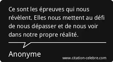 Ce sont les épreuves qui nous révèlent. Elles nous mettent au défi de nous dépasser et de nous voir dans notre propre réalité.