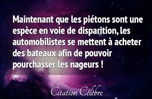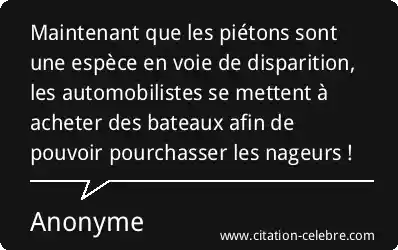 Maintenant que les piétons sont une espèce en voie de disparition, les automobilistes se mettent à acheter des bateaux afin de pouvoir pourchasser les nageurs !