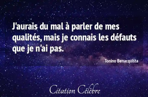 J'aurais du mal à parler de mes qualités, mais je connais les défauts que je n'ai pas.