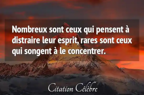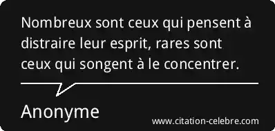 Nombreux sont ceux qui pensent à distraire leur esprit, rares sont ceux qui songent à le concentrer.