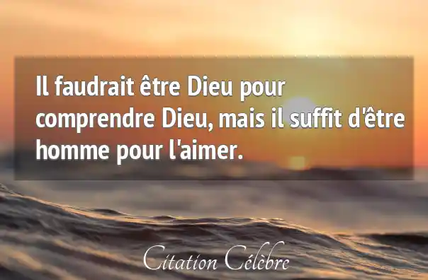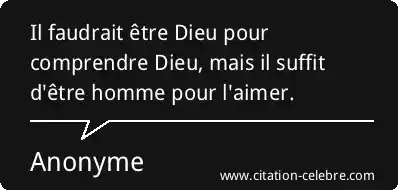 Il faudrait être Dieu pour comprendre Dieu, mais il suffit d'être homme pour l'aimer.