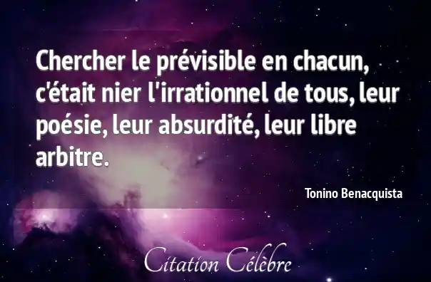Chercher le prévisible en chacun, c'était nier l'irrationnel de tous, leur poésie, leur absurdité, leur libre arbitre.