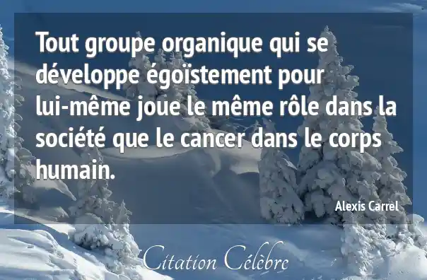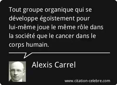 Tout groupe organique qui se développe égoïstement pour lui-même joue le même rôle dans la société que le cancer dans le corps humain.