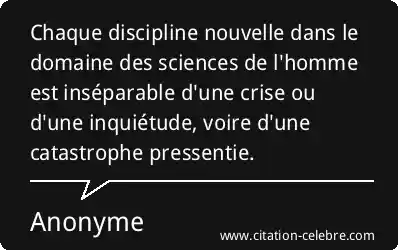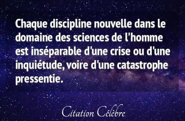 Chaque discipline nouvelle dans le domaine des sciences de l'homme est inséparable d'une crise ou d'une inquiétude, voire d'une catastrophe pressentie.