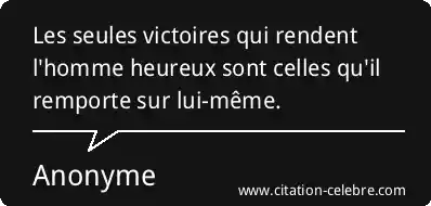 Les seules victoires qui rendent l'homme heureux sont celles qu'il remporte sur lui-même.