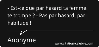 - Est-ce que par hasard ta femme te trompe ? - Pas par hasard, par habitude !