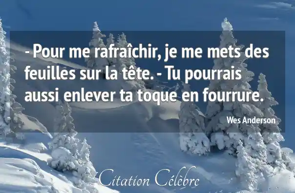 - Pour me rafraîchir, je me mets des feuilles sur la tête. - Tu pourrais aussi enlever ta toque en fourrure.