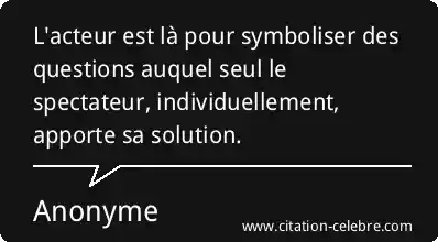 L'acteur est là pour symboliser des questions auquel seul le spectateur, individuellement, apporte sa solution.