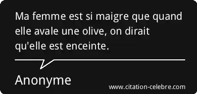 Ma femme est si maigre que quand elle avale une olive, on dirait qu'elle est enceinte.