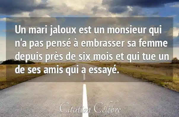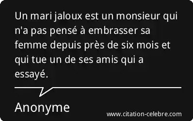 Un mari jaloux est un monsieur qui n'a pas pensé à embrasser sa femme depuis près de six mois et qui tue un de ses amis qui a essayé.