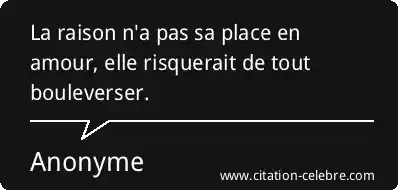 La raison n'a pas sa place en amour, elle risquerait de tout bouleverser.