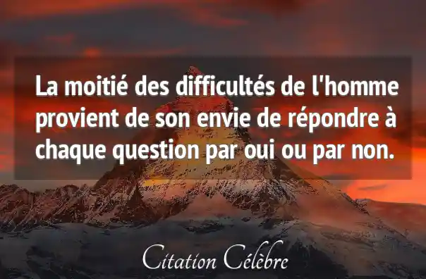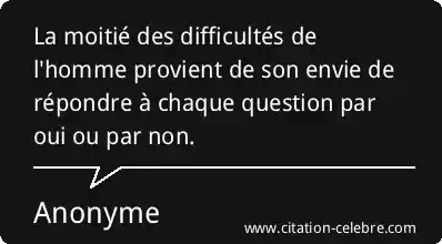 La moitié des difficultés de l'homme provient de son envie de répondre à chaque question par oui ou par non.