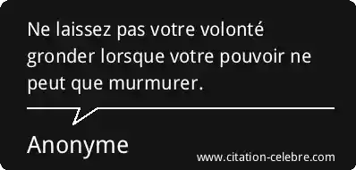 Ne laissez pas votre volonté gronder lorsque votre pouvoir ne peut que murmurer.