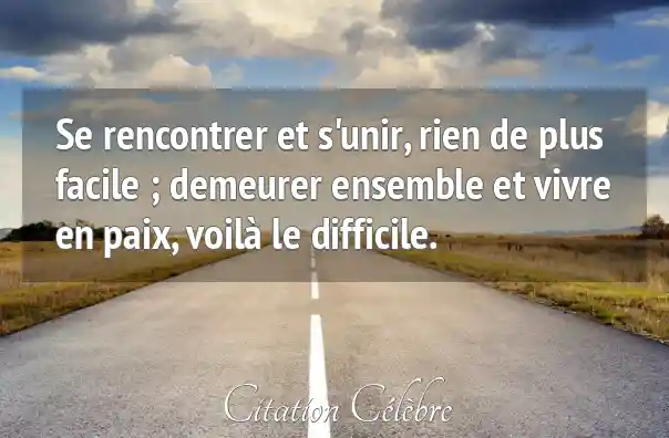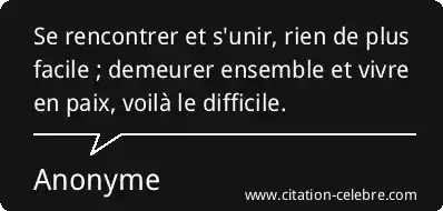 Se rencontrer et s'unir, rien de plus facile ; demeurer ensemble et vivre en paix, voilà le difficile.