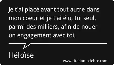 Je t'ai placé avant tout autre dans mon coeur et je t'ai élu, toi seul, parmi des milliers, afin de nouer un engagement avec toi.