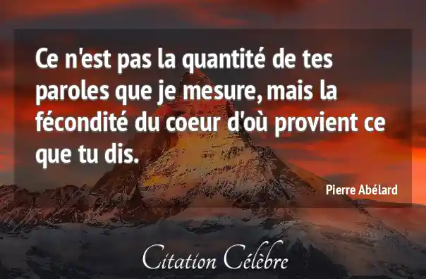 Ce n'est pas la quantité de tes paroles que je mesure, mais la fécondité du coeur d'où provient ce que tu dis.
