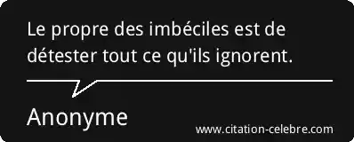 Le propre des imbéciles est de détester tout ce qu'ils ignorent.
