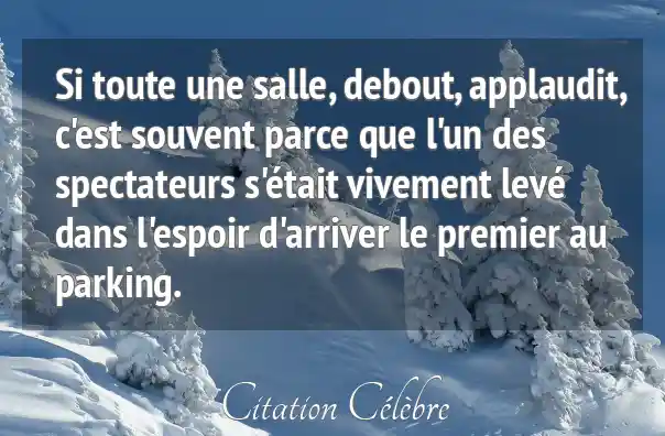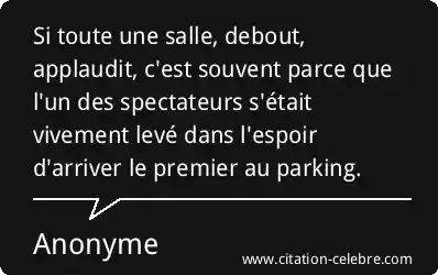 Si toute une salle, debout, applaudit, c'est souvent parce que l'un des spectateurs s'était vivement levé dans l'espoir d'arriver le premier au parking.