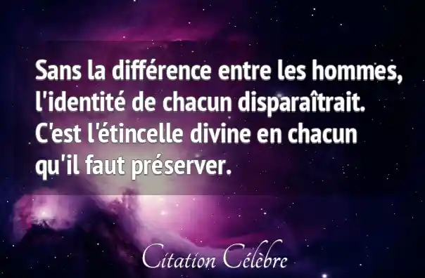Sans la différence entre les hommes, l'identité de chacun disparaîtrait. C'est l'étincelle divine en chacun qu'il faut préserver.