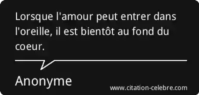 Lorsque l'amour peut entrer dans l'oreille, il est bientôt au fond du coeur.
