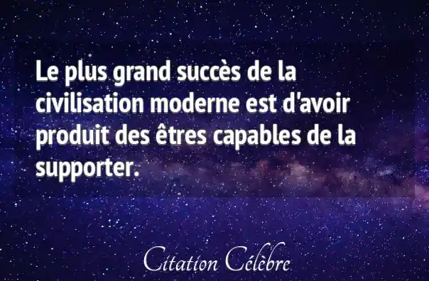 Le plus grand succès de la civilisation moderne est d'avoir produit des êtres capables de la supporter.
