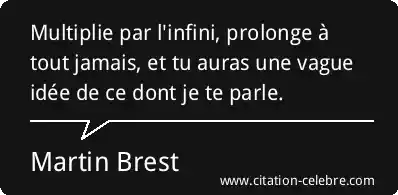 Multiplie par l'infini, prolonge à tout jamais, et tu auras une vague idée de ce dont je te parle.