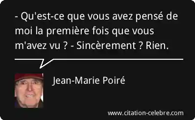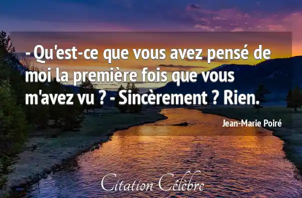 - Qu'est-ce que vous avez pensé de moi la première fois que vous m'avez vu ? - Sincèrement ? Rien.