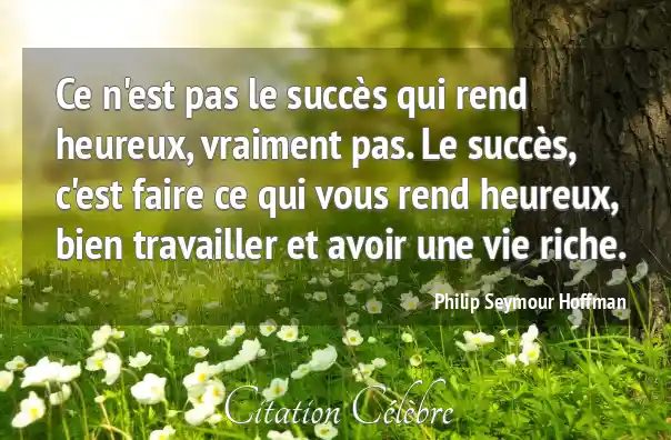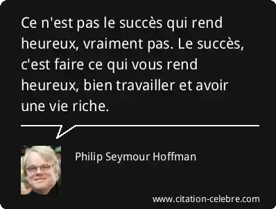 Ce n'est pas le succès qui rend heureux, vraiment pas. Le succès, c'est faire ce qui vous rend heureux, bien travailler et avoir une vie riche.