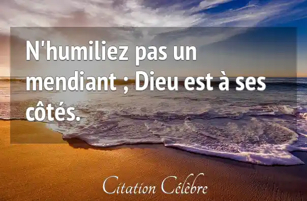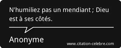 N'humiliez pas un mendiant ; Dieu est à ses côtés.
